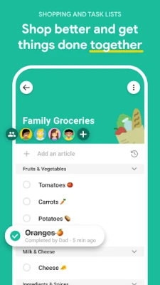 • Share grocery and shopping lists with the whole family