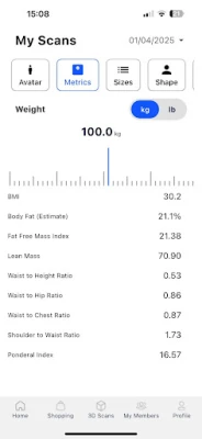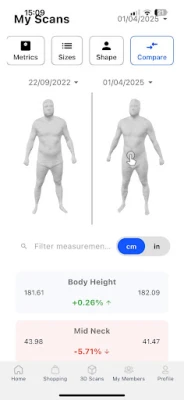 Tap on areas like biceps or waist to see current measurements displayed right on your 3D avatar