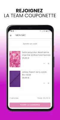 Téléchargez notre application 100% TISSUS à petits prix ! Super simple d'utilisation !