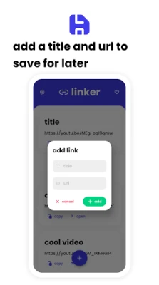 An easy to use app that anyone can pick up and use immediately, saving links have never been this easier before, simple click the "+"add button and just add a title and then your url, that's it, your link is saved, in a clean app UI/UX that is clutter free, so you can use with our frustration.