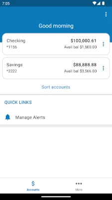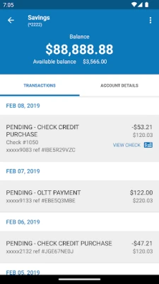 Features: • Check your account balances. • Review recent transactions. • Transfer funds between your accounts. • Click on forgot password to change your password.
