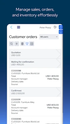 You can: * add, view and edit any data. It will be synchronized with MRPeasy platform immediately thus becoming available to all your colleagues; * dynamically re-schedule production orders by dragging them to a different place on the calendar with your finger; * get all available statistics.