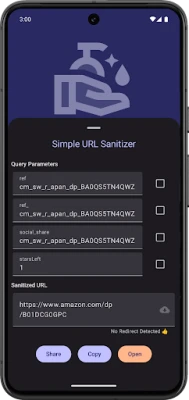 Anyway, this app gives you a simple way to remove query parameters from any URL. Either launch the app and paste a URL into the text box or share a URL from another app via the Android Sharesheet.