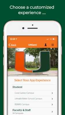 With the UMiami mobile app, you can take The U whenever you’re on the move. Whether you’re a student or employee, you can quickly access campus news, information, and resources that are important to you - anytime.