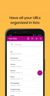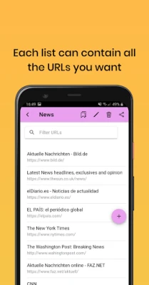 With "URL Bookmarker" you can create unlimited lists with unlimited URLs or links each of them.