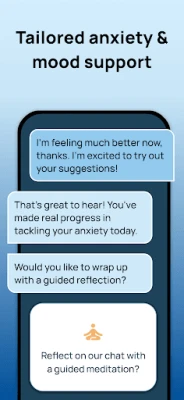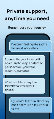 - Chat anytime—whether during a work break or at 3 AM—and get evidence-based support using techniques like CBT and mindfulness