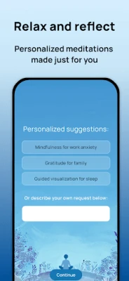 - Ask for any meditation you'd like, from "guided sleep visualization" to "help me with work stress" and get it instantly